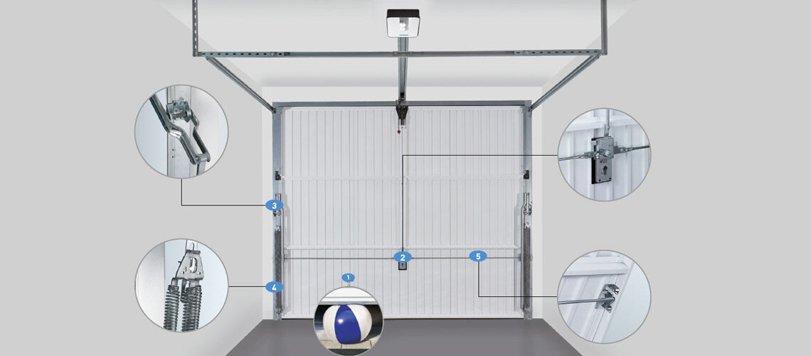 Die Winkelzargen machen ein Eingreifen zwischen Torblatt und Zarge so gut wie unmöglich. Innen liegende Tragseile minimieren Verletzungsrisiken und gewährleisten höchste Funktionssicherheit.
