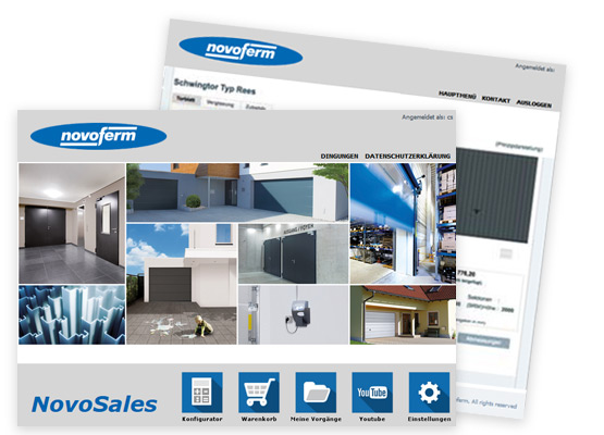 Nutzen Sie die Vorteile von NovoSales – Ihrem einfachen Angebots- und Bestellsystem von Novoferm. Über Ihren Zugang zum Novoferm Erfolgs-Portal erhalten Sie nach Freischaltung direkten Zugriff und können rund um die Uhr Produkte konfigurieren, bestellen, eigene Angebote erstellen oder Preise abfragen.
