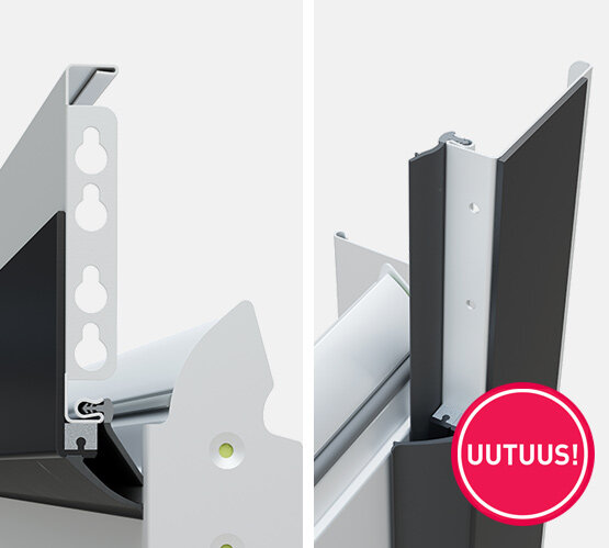 Uusi kaapelikäyttö varmistaa, että kaapeli kulkee turvallisesti kulmakehyksessä ilman, että kaapelit koskettavat eristettyä osaa. Erillinen ovilehdenohjain varmistaa ovilehden optimaalisen suljetun asennon.