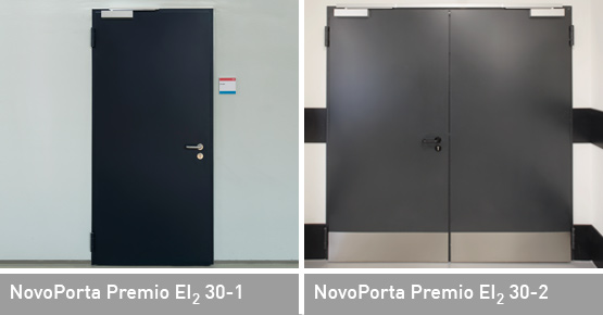 Türblatt und Zarge verzinkt und grundiert (pulverbeschichtet) ähnlich RAL 9016. Optional Türblatt und Zarge auch in RAL nach Wahl oder Novoferm Design-Oberfläche lieferbar.
