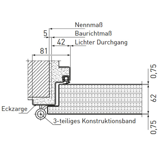 Ein wesentlicher Vorteil sind die zugelassenen Zargenhinterfüllungen mit Novoferm Brandschutzschaum und loser Mineralwolle*, mit denen zeitsparend nur der Falzbereich der Eckzarge hinterfüllt wird, während die Gegenzarge frei bleiben kann.