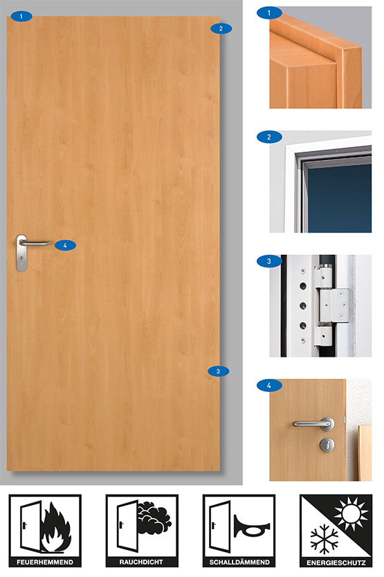 Das Premio Vario Türsystem ist einflügelig und zweiflügelig sowohl als Innen- (T30 und MZ) als auch als Außentür (MZ) verfügbar. Doch nicht nur funktional weiß das Türsystem Premio Vario zu überzeugen, es ist auch ein echter Blickfang.