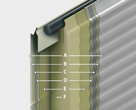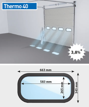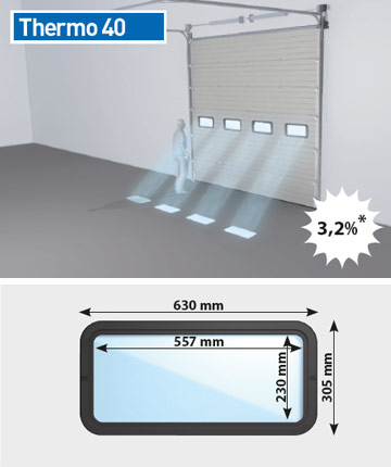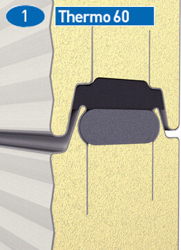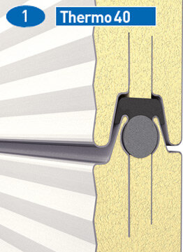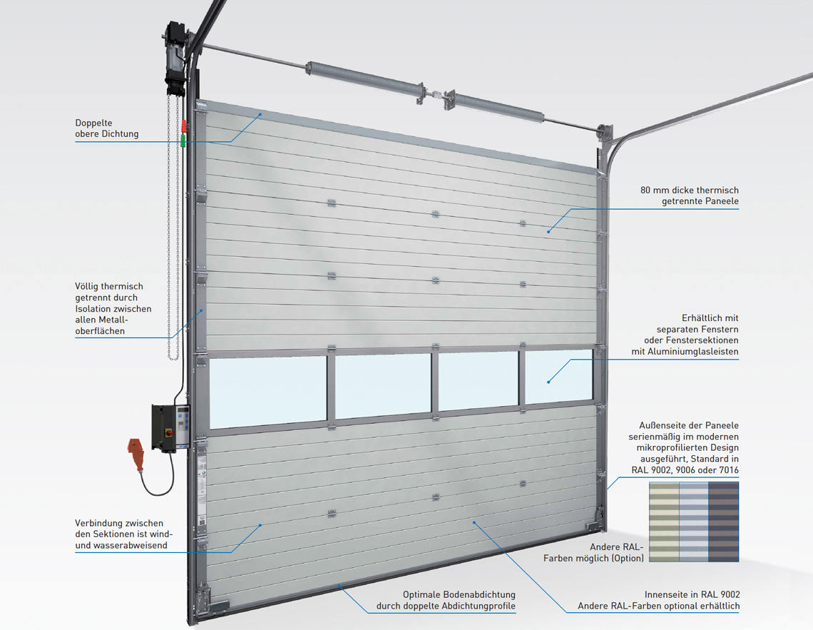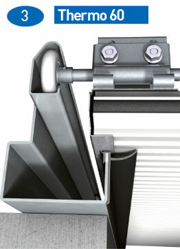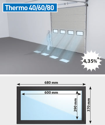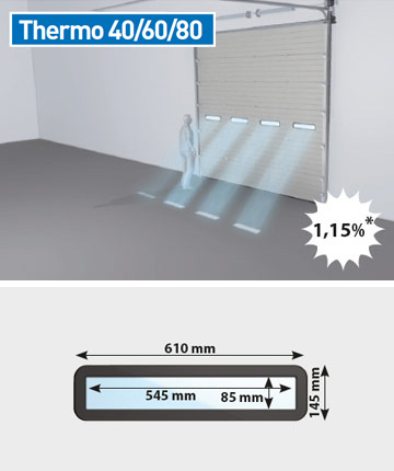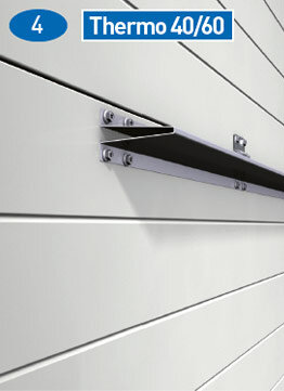 Thermo 80 mm nosto-sovi koostuu vaakapaneeleista, jotka kulkevat katon alla tai pystysuunnassa ylöspäin ovea avattaessa. Muovitiivisteen ansiosta paneelien välinen liitäntä on tuulen- ja vedenpitävä.